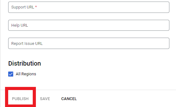 6.1. Fill out all the necessary information in the "Store Listing" tab. This includes your app name, short and long descriptions, any logos or icons, privacy policy and support links to your website, etc. Once you're done, click "Save" but again, don't click "Publish".