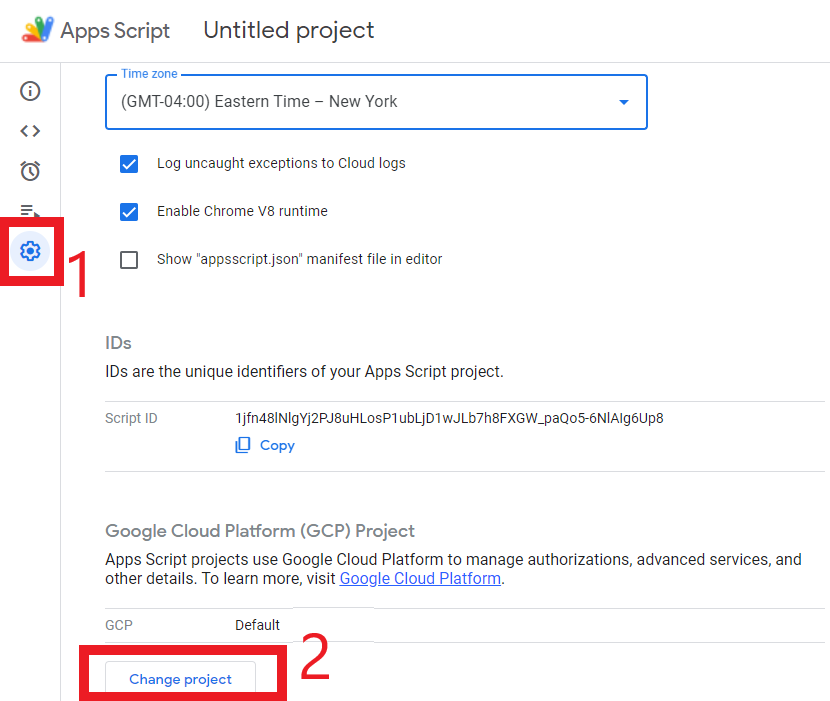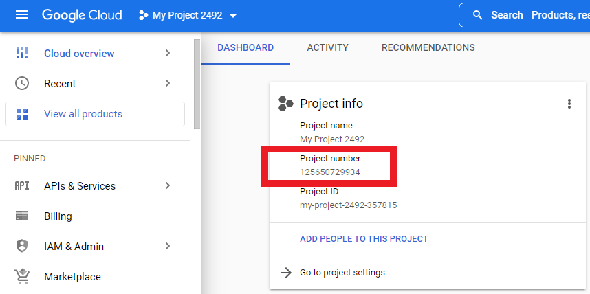 4.3. Link your GAS project with your GCP. To do this, all you have to do is find your project number on your GCP dashboard. It looks like this: