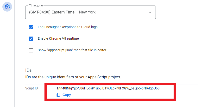 The project script ID is found in the GAS project settings page.