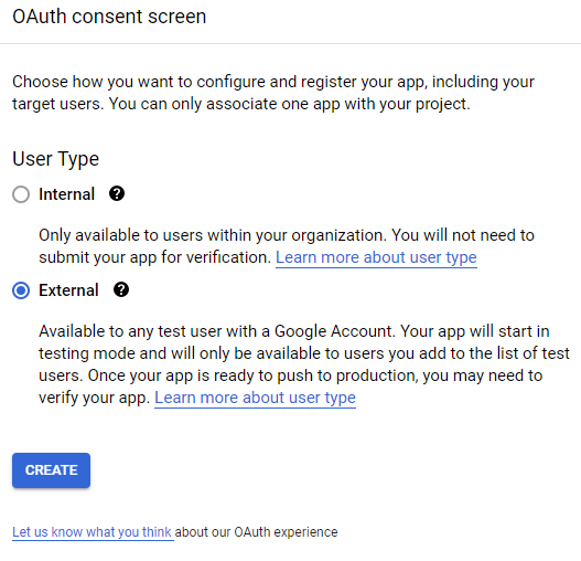 3.2. It's going to ask if you want your app to configured as external or internal. If you what it to be public, click "External" and then click "Create".
