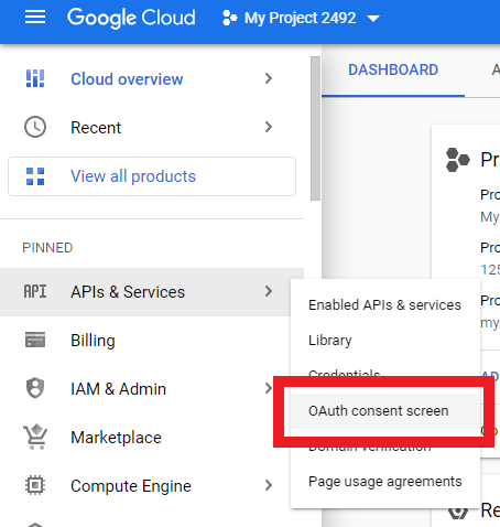 3.1. On your GCP project overview page, click on "APIs and Services" and then "Oauth consent screen".