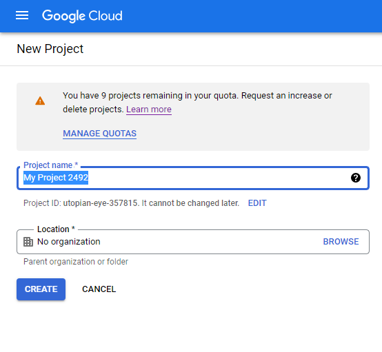 2.1. Log on to your Google Cloud Console and create a new project.