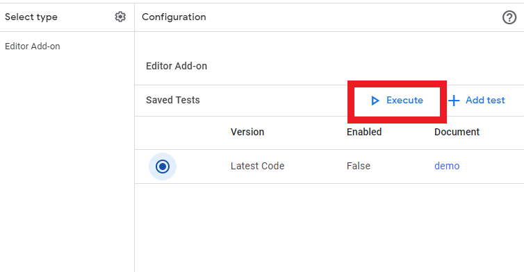 7.1.1. On your GAS project, click the "Deploy" dropdown at the top right. Then, click "Test deployments". A modal will pop up to ask which deployment type. You want to select what makes sense for you but for Google Sheets or Docs, select "Editor Add-on" NOT "Google Workspace Add-on".
