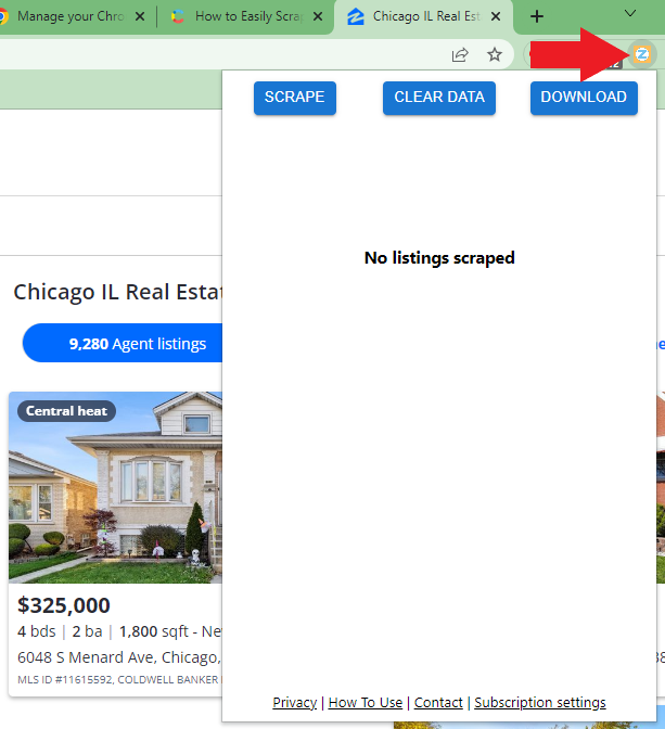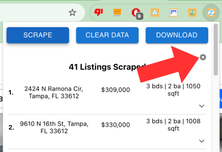 To scrape, just click the "Scrape" button and the extension will automatically scroll to load all the listings on the page.