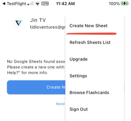 Once you've added content to your spreadsheet, open up the Flashcard Lab mobile app and sign in.
