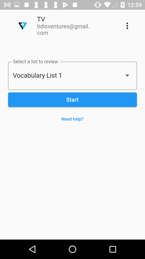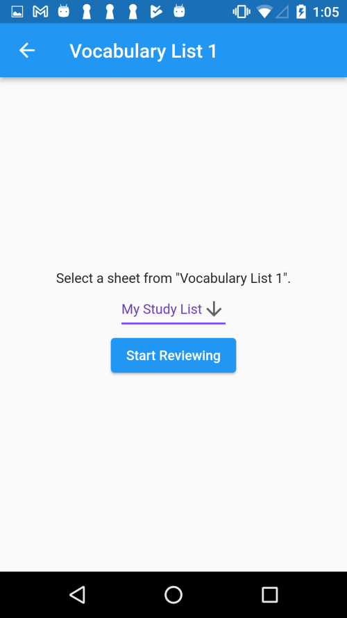 This screen allows you to select which "sheet" in that spreadsheet file you want to review from. Each "sheet" is a list of words or whatever you want to test. After you've chosen a list, tap "Start Reviewing" to begin.
